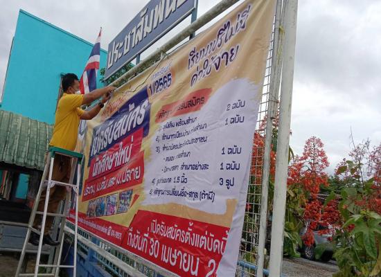 กศฯ.อำเภอทุ่งหว้า ดำเนินการติดตั้งป้ายประชาสัมพันธ์ การเปิดรับนักศึกษาใหม่ ระดับประถม, ม.ต้น และม.ปลาย