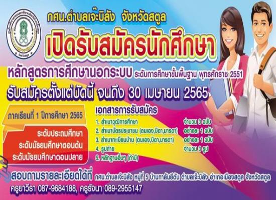 กศน.อำเภอควนกาหลงรับสมัครนักศึกษาใหม่1/2565