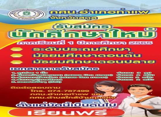 นางสาววชิรา คงพูล บรรณารักษ์ปฏิบัติการ รักษาการในตำแหน่ง ผู้อำนวยการ กศน.อำเภอท่าแพ จังหวัดสตูล มอบหมายให้ นางยามานี ปาละวัล ครู อาสาฯ รับสมัครนักศึกษาใหม่ ภาคเรียนที่ 1/2565 ณ กศน.ตำบลท่าเรือ อำเภอท่าแพ จังหวัดสตูล |