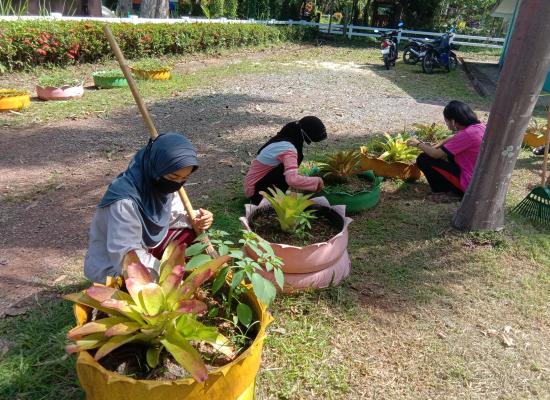 นางสาววชิรา คงพูล บรรณารักษ์ ปฏิบัติการ รักษาการในตำแหน่ง ผู้อำนวยการ กศน.อำเภอท่าแพ จังหวัดสตูล มอบหมายให้ นางยามานี ปาละวัล ครูอาสาฯ จัดกิจกรรมจิตอาสาพัฒนา กศน.ตำบลท่าเรือ |