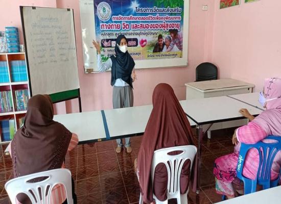 กศน.ตำบลบ้านควนจัดโครงการการจัดและส่งเสริมการจัดการศึกษาตลอดชีวิตเพื่อคงพัฒนาการทางกายจิตและสมองของผู้สูงอายุ หลักสูตรสูงวัยอย่างสง่าอนุรักษ์ภูมิปัญญา