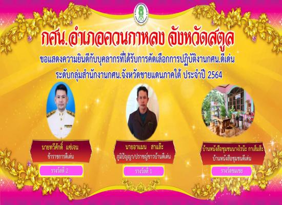 กศน.อำเภอควนกาหลง เข้าร่วมประกวดโครงงานจิตอาสาต้นแบบ 15 มีนาคน 2565 นายทวีศักดิ์ แซ่เจน ครูชำนาญการ รักษาการในตำแหน่งผู้อำนวยการกศน.อำเภอควนกาหลง มอบหมายให้นางวนิดา ปังแลมาปุเลา ครูอาสาฯ นำนักศึกษาเข้าร่วมประกวดโครงงานจิตอาสาต้นแบบโดยมีนายคณาธิป บุญญาร |