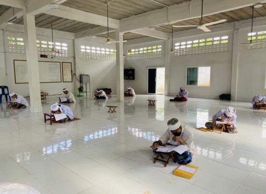 ครูอาสาสมัครประจำสถาบันศึกษาปอเนาะท่องจำอัลกุรอานอัลฟิรเดาส์ อำเภอควนโดน ดำเนินการทดสอบวัดผลสัมฤทธิ์ปลายภาคเรียนที่ 2 ปีการศึกษา 2564 ระดับมัธยมศึกษาตอนต้น