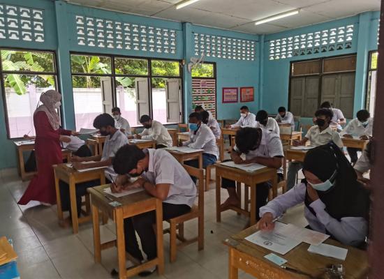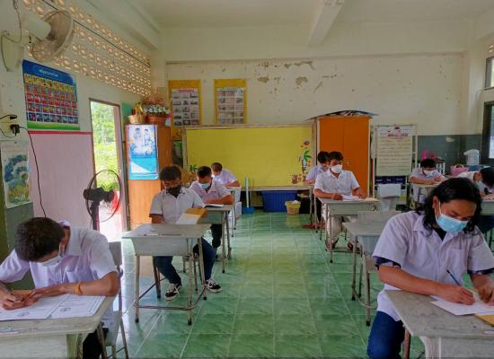 ครูอาสาสมัครประจำสถาบันปอเนาะฮาฟิซอัลฟุรกอน อำเภอควนโดน ดำเนินการทดสอบวัดผลสัมฤทธิ์ปลายภาคเรียนที่ 2 ปีการศึกษา 2564 ระดับมัธยมศึกษาตอนปลาย