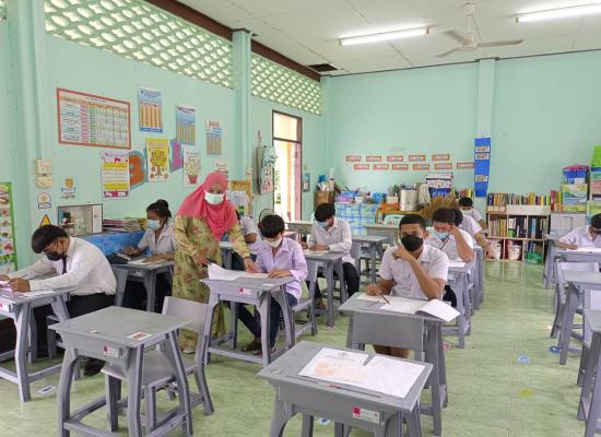 กศน.อำเภอทุ่งหว้า ดำเนินการสอบวัดผลสัมฤทธิ์ ปลายภาคเรียน หลักสูตรการศึกษานอกระบบ ระดับการศึกษาขั้นพื้นฐาน พุทธศักราช 2551 ประจำภาคเรียนที่ 2 ปีการศึกษา 2564