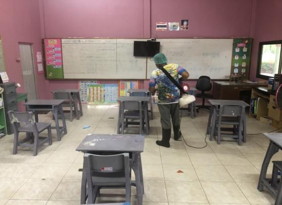 กศน.อำเภอทุ่งหว้า ดำเนินการฉีดพ่นยาฆ่าเชื้อโควิด