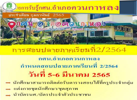 กศน.อำเภอควนกาหลงดำเนินการสอบปลายภาคเรียนท่ี2/2564