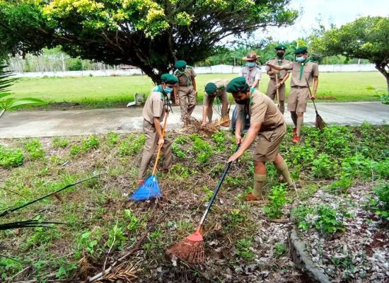 กศน.ตำบลควนโดน นำหน่วยลูกเสือจิตอาสาพระราชทาน กองลูกเสือศูนย์การศึกษานอกระบบและการศึกษาตามอัธยาศัยอำเภอควนโดน จัดกิจกรรมบำเพ็ญประโยชน์ ปรับปรุงพัฒนาศูนย์การเรียนรู้สำหรับทุกช่วงวัย กศน.