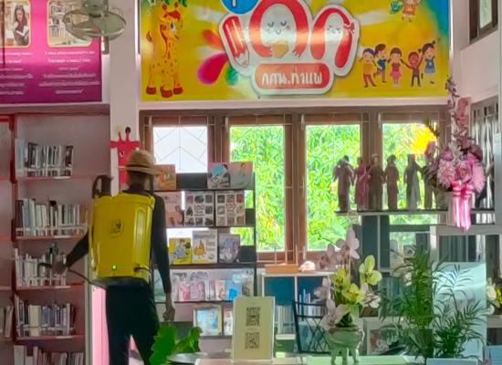 ห้องสมุดประชาชนเภอท่าแพฉีดพ่นแอลกอฮอล์ฆ่าเชื้อโควิด-19