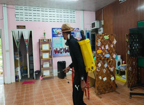 กศน.ตำบลท่าแพฉีดพ่นแอลกอฮอล์ฆ่าเชื้อโควิด-19
