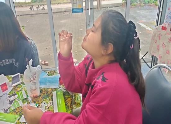 นางสาววชิรา คงพูล บรรณารักษ์ปฎิบัติการ รักษาการในตำแหน่ง ผู้อำนวยการ กศน.อำเภอท่าแพ มอบหมายให้ บุคลากร และนักศึกษา กศน.อำเภอทาแพ ตรวจหาเชื้อไวรัสโควิด 19 (ATK) เพื่อเตรียมความพร้อม ในการบริจาคโลหิต |