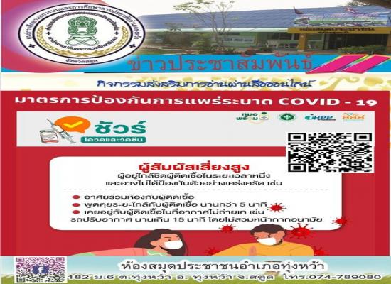 ห้องสมุดประชาชนอำเภอทุ่งหว้า ส่งเสริมการอ่านออนไลน์📚📖 \"มาตรการป้องกันการแพร่ระบาด COVID-19 \"