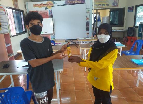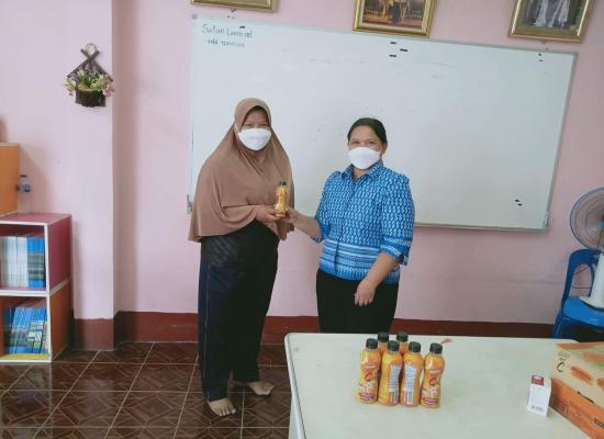 กศน.ตำบลเจ๊ะบิลัง มอบน้ำผลไม้ดีโด้ ให้กับนักศึกษา.กศน.ตำบลเจ๊ะบิลัง