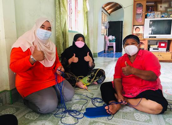 ครูอาสาสมัคร กศน.ตำบลปูยู นิเทศการจัดกิจกรรมหลักสูตรการทำรองเท้าเชือกถัก