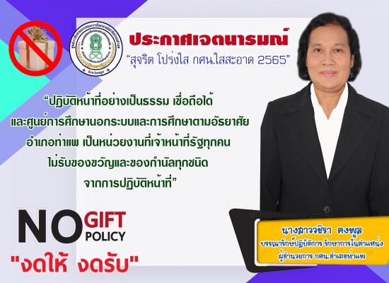 กศน.อำเภอท่าแพ ประกาศเจตนารมณ์ สุจริต โปร่งใส กศน.ใสสะอาด 2565