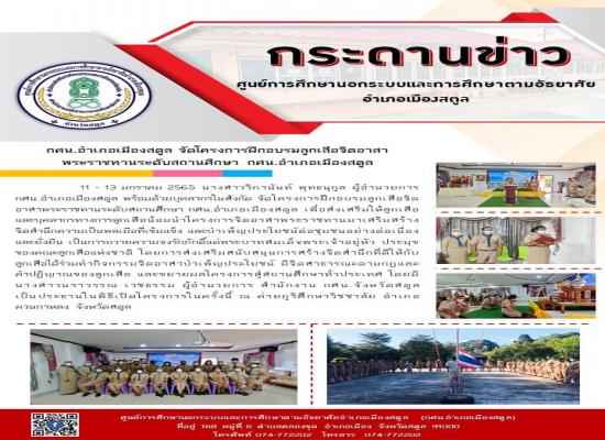 กศน.อำเภอเมืองสตูล จัดโครงการฝึกอบรมลูกเสือจิตอาสาพระราชทานระดับสถานศึกษา กศน.อำเภอเมืองสตูล