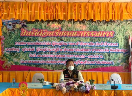 วันที่ 13 มกราคม 2565 นางสาวจตุพร ทหารไทย ครูชำนาญการ รักษาการในตำแหน่ง ผู้อำนวยการศูนย์ กศน.อำเภอมะนังจังหวัดสตูล มอบหมายให้นายณัฐนิช แก้วเมฆ ครูผู้ช่วย ร่วมเป็นเกียรติต้อนรับคณะกรรมการพิจารณาคัดเลือกกำนัน ผู้ใหญ่บ้าน ฯลฯ เข้ารับรางวัล ประจำปี 256