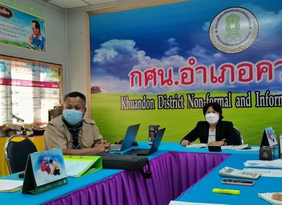 วันที่ 7 มกราคม 2565 นางสาวจตุพร ทหารไทย ครูชำนาญการ รักษาการในตำแหน่ง ผู้อำนวยการศูนย์ กศน.อำเภอมะนัง จังหวัดสตูล พร้อมด้วยบุคลากรในสังกัด กศน.อำเภอมะนัง จัดประชุมบุคากรสัญจรประจำสัปดาห์ เพื่อติดตามผลการดำเนินงานและวางแผนการปฏิบัติงานไตรตามที่ |
