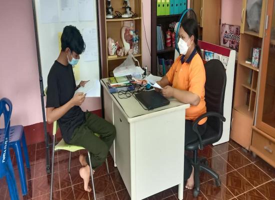 ครูอาสาสมัคร กศน.ตำบลฉลุง ประเมินระดับการรู้หนังสือของนักศึกษา กศน. ประจำภาคเรียนที่ 2 ปีการศึกษา 2564