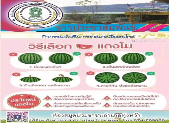 ห้องสมุดประชาชนอำเภอทุ่งหว้า ส่งเสริมการอ่านออนไลน์📚📖 \"วิธีเลือกแตงโม\"