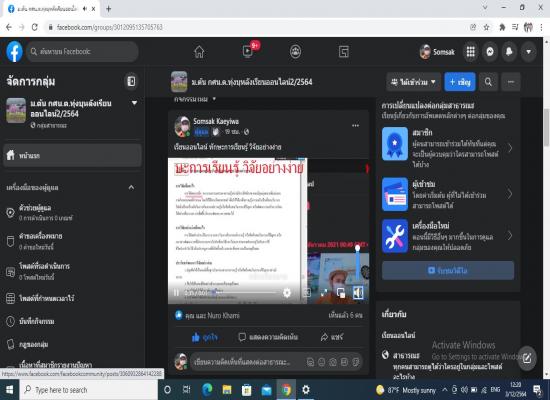 กศน.ตำบลป่าแก่บ่อหิน อำเภอทุ่งหว้า จัดการเรียนการสอนออนไลน์ขั้นพื้นฐานระดับม.ปลายวิชาการขายและการตลาดผ่านระบบ google meet ,you tube,ผ่านห้องเรียนกลุ่มไลน์ และทำแบบทดสอบผ่าน เว็บไซต์ Quiziss