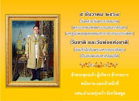 กศน.อำเภอทุ่งหว้า ร่วมรำลึก 🙏เนื่องในโอกาสวันคล้ายวันพระบรมราชสมภพพระบาทสมเด็จพระบรมชนกาธิเบศร มหาภูมิพลอดุลยเดชมหาราช บรมนาถบพิตร 5 ธันวาคม 2564 ข้าพระพุทธเจ้า บุคลากร กศน.อำเภอทุ่งหว้า และห้องสมุดประชาชนอำเภอทุ่งหว้า จังหวัดสตูล ขอน้อมรำลึ