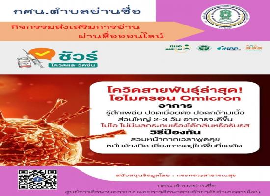 กศน.ตำบลย่านซื่อ จัดกิจกรรมส่งเสริมการอ่านผ่านสื่อออนไลน์ เรื่อง โควิดสายพันธ์ุล่าสุด โอไมครอน Omicron