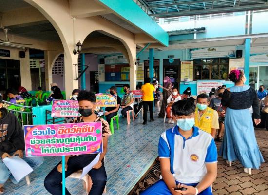 นักศึกษาสถาบันศึกษาปอเนาะ เข้ารับการฉีดวัคซีนเพื่อป้องกันการแพร่ระบาดของโรคติดเชื้อไวรัสโคโรนา 2019