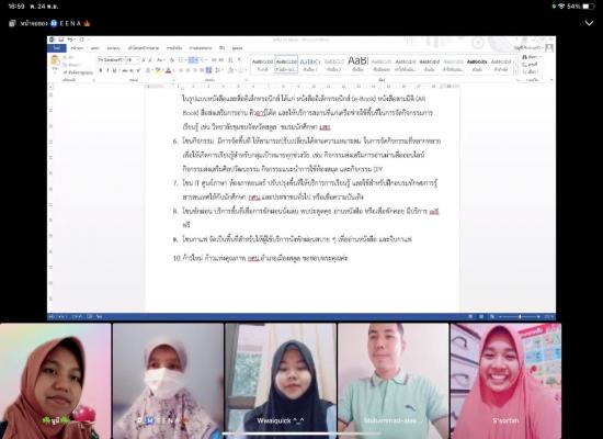 ครู กศน.ตำบลพิมาน ร่วมกันวางแผนการทำ VTR รายงานผลการดำเนินงาน ศูนย์การเรียนรู้ต้นแบบ (Co - Learning Space) จังหวัดสตูล ประจำปีงบประมาณ 2564