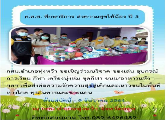 วันที่ 25 พฤศจิกายน 2564 นางสาวจตุพร ทหารไทย ครูชำนาญการ รักษาการในตำแหน่ง ผู้อำนวยการศูนย์ กศน.อำเภอมะนังจังหวัดสตูล มอบหมายให้นางสาวดวงกมล ประทุมมณี ครู กศน.ตำบลปาล์มพัฒนา พร้อมด้วยนางนฤมล ช่วยดำ ครูอาสาสมัครฯ กศน.ตำบลปาล์มพัฒนา พร้อมด้วยนักศ |