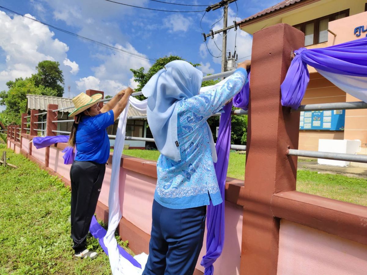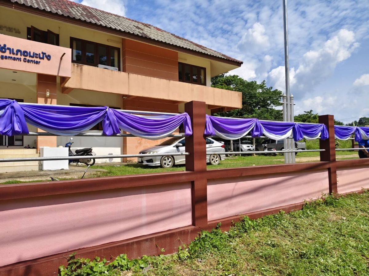 นายมรกต กันหนองผือ ผู้อำนวยการสถานศึกษาศูนย์ส่งเสริมการเรียนรู้ระดับอำเภอละงู รักษาการในตำแหน่ง ผู้อำนวยการสถานศึกษา สกร.ระดับอำเภอมะนัง มอบหมายให้บุคลากรในสังกัด ร่วมจัดตกแต่งสถานที่ประดับพระบรมฉายาลักษณ์สมเด็จพระนางเจ้าฯ พระบรมราชินี ประดับธงชาติคู่ธงอักษรพระนามาภิไธย ส.ท. ประดับผ้าระบายสีม่วง ร่วมกับผ้าระบายสีขาว บริเวณรั้วสำนักงาน สกร.ระดับอำเภอมะนัง เพื่อเป็นการแสดงความจงรักภักดีและสำนึกในพระมหากรุณาธิคุณ เนื่องในโอกาสวันเฉลิมพระชนมพรรษา สมเด็จพระนางเจ้าสุทิดา พัชรสุธาพิมลลักษณ พระบรมราชินี ณ สกร.ระดับอำเภอมะนัง