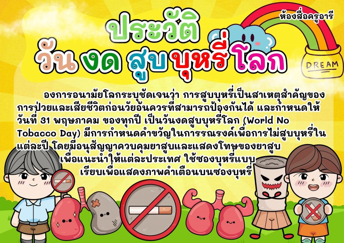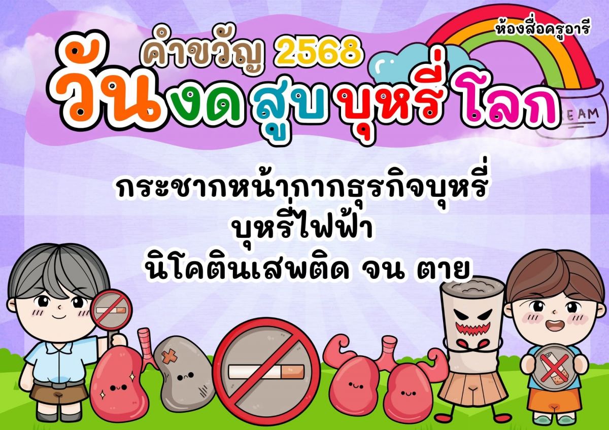 นายมรกต กันหนองผือ ผู้อำนวยการสถานศึกษาศูนย์ส่งเสริมการเรียนรู้ระดับอำเภอละงู รักษาการในตำแหน่งผู้อำนวยการสถานศึกษา สกร.ระดับอำเภอมะนัง ได้มอบหมายให้ นางสาวนริสรา พงค์หลง บรรณารักษ์ ส่งเสริมการอ่านและการเรียนรู้ผ่านระบบออนไลน์ วันงดสูบบุหรี่โลก วันที่ 31 พฤษภาคมเป็นวันงดสูบบุหรี่โลก (WNTD) ในปี 2568 องค์การอนามัยโลกและผู้นำด้านสาธารณสุขจากทั่วโลกจะมารวมตัวกันที่ WNTD เพื่อสร้างความตระหนักรู้เกี่ยวกับโทษของบุหรี่ อันตรายของบุหรี่ไฟฟ้า
