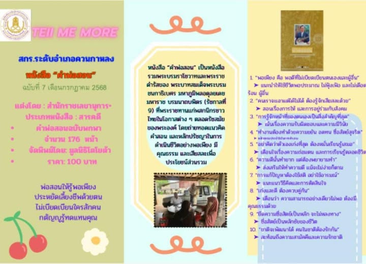 ¹ÒÂÍÒ´Ó ÅÔ§ÒÅÒËì ¼ÙéÍӹǡÒÃÈÙ¹ÂìÊè§àÊÃÔÁ¡ÒÃàÃÕ¹ÃÙéÃдѺÍÓàÀÍ·èÒá¾ ÃÑ¡ÉÒ¡ÒÃã¹µÓá˹觼ÙéÍӹǡÒÃÈÙ¹ÂìÊè§àÊÃÔÁ¡ÒÃàÃÕ¹ÃÙéÃдѺÍÓàÀͤǹ¡ÒËŧ ÁͺËÁÒÂãËé §Ò¹¨Ñ´¡ÒÃàÃÕ¹ÃÙéµÅÍ´ªÕÇÔµ ´Óà¹Ô¹¡ÒèѴ¡Ô¨¡ÃÃÁ Êè§àÊÃÔÁ¡ÒÃÇÔà¤ÃÒÐËì áÅСÒÃÍèÒ¹ÍÂèÒ§à»ç¹¡Ãкǹ¡Òà â´Â¼ÙéºÃÔËÒÃáÅФÃÙà»ç¹µé¹áºº ÀÒÂãµé¡Ô¨¡ÃÃÁ ''''Tell me more" â´Â¡Ó˹´ãËéºØ¤Åҡ÷ҧ¡ÒÃÈÖ¡ÉÒ Íèҹ˹ѧÊ×͵ÒÁ¤ÇÒÁʹ㨠à¾×èÍÊè§àÊÃÔÁãËé¤ÃÙáÅкؤÅҡ÷ҧ¡ÒÃÈÖ¡ÉÒ ÁÕ·Ñ¡ÉÐ㹡ÒÃáÊǧËÒ¤ÇÒÁÃÙé à¾×è͹Óä»à»ç¹áººÍÂèÒ§á¡è¼ÙéàÃÕ¹ "Íèҹ˹ѧÊ×͵ÒÁ¤ÇÒÁʹ㨠ÍÂèÒ§¹éÍÂà´×͹ÅÐ 1 àÅèÁ áÅÐÊÃØ»à¹×éÍËÒ·ÕèÍèÒ¹â´Â·Óà»ç¹ºÃóҹԷÑȹì"³ ËéͧÊÁØ´»ÃЪҪ¹ÍÓàÀͤǹ¡ÒËŧ ¨Ñ§ËÇѴʵÙÅ