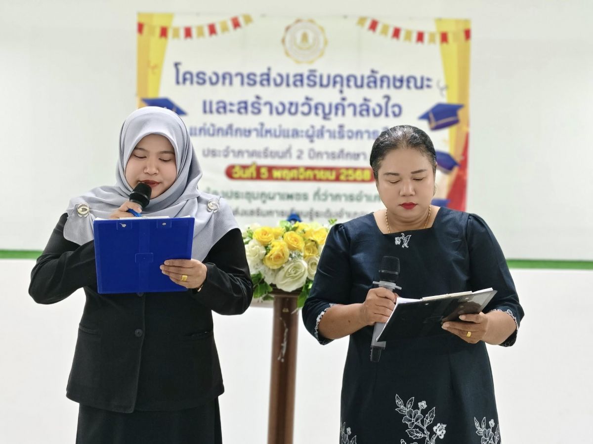 นายบุญนำ หมีนยะลา ผู้อำนวยการสถานศึกษาศูนย์ส่งเสริมการเรียนรู้ระดับอำเภอมะนัง มอบหมายให้บุคลากรในสังกัด จัดโครงการส่งเสริมคุณลักษณะและสร้างขวัญกำลังใจแก่นักศึกษาใหม่และผู้สำเร็จการศึกษา ประจำภาคเรียนที่ 2 ปีการศึกษา 2568
