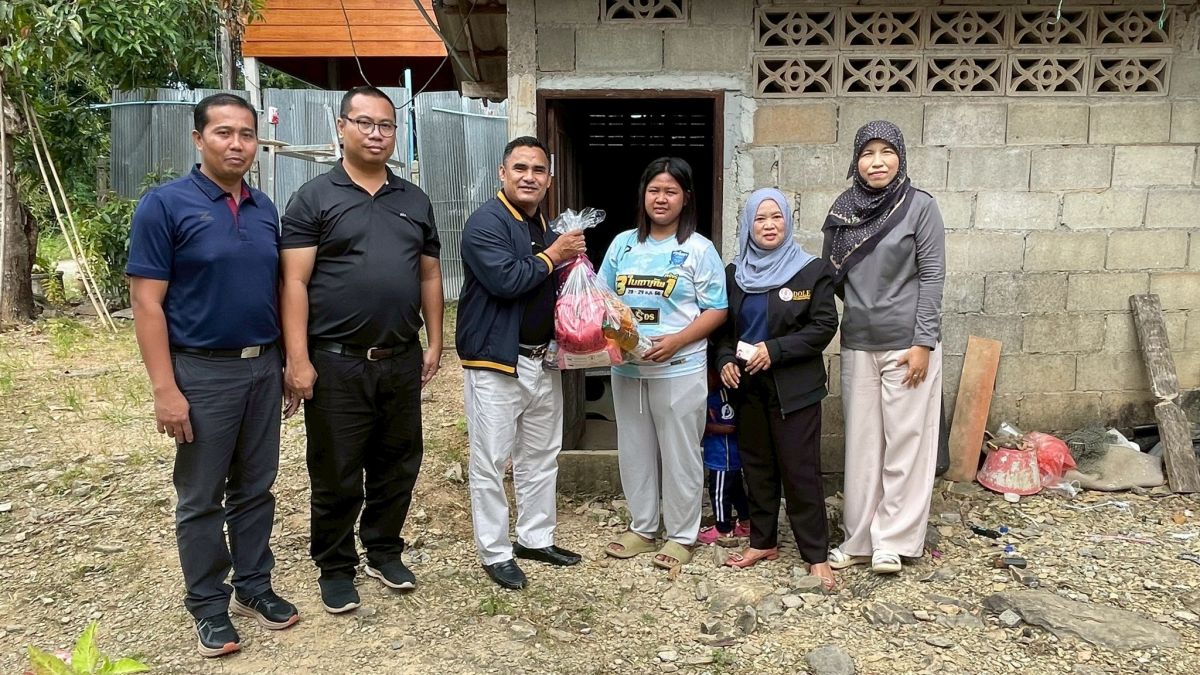 นายอาดำ ลิงาลาห์ ผู้อำนวยการ สกร.ระดับอำเภอท่าแพ มอบถุงยังชีพส่งต่อความช่วยเหลือ นักศึกษาสกร.ระดับอำเภอท่าแพ ผู้ประสบอุทกภัย ณ ตำบลควนโพธิ์ อำเภอเมืองสตูล จังหวัดสตูล