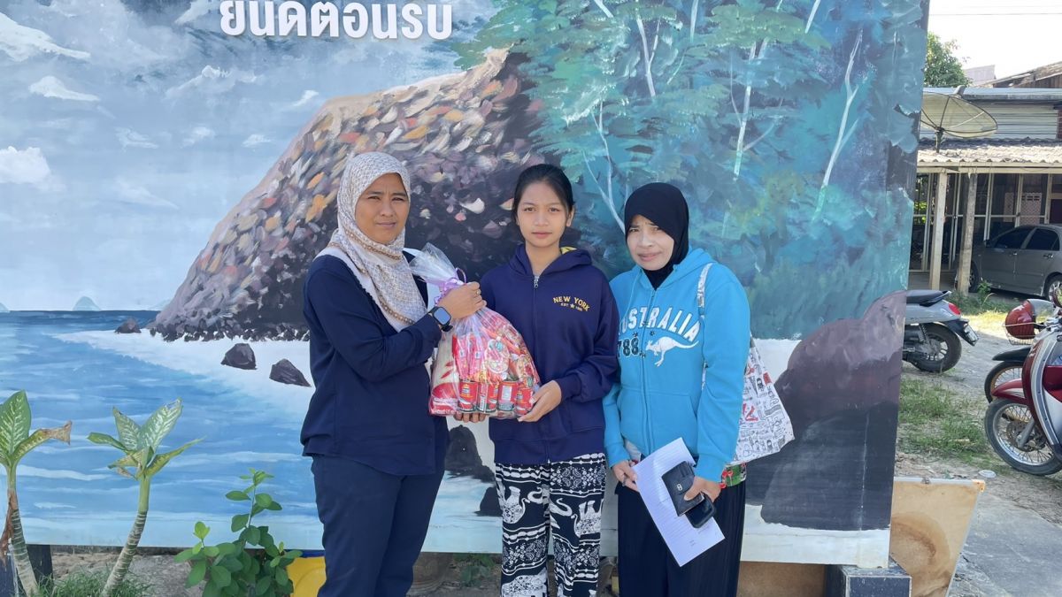 นายอาดำ ลิงาลาห์ ผู้อำนวยการสถานศึกษาศูนย์ส่งเสริมการเรียนรู้ระดับอำเภอท่าแพ รักษาการในตำแหน่ง ผู้อำนวยการสถานศึกษาศูนย์ส่งเสริมการเรียนรู้ระดับอำเภอละงู มอบหมายให้ นางสาวทิพาพร โต๊ะมิ ครูศูนย์การเรียนรู้ มอบถุงยังชีพ เพื่อช่วยเหลือนักศึกษา ศกร.ระดับตำบลกำแพง สกร.ระดับอำเภอละงู ที่ประสบอุทกภัย ณ สกร.ระดับอำเภอละงู จังหวัดสตูล