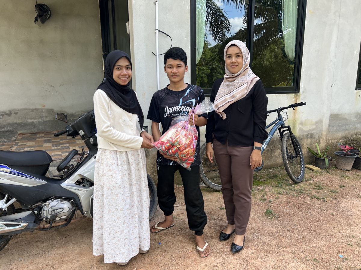 นายอาดำ ลิงาลาห์ ผู้อำนวยการสถานศึกษาศูนย์ส่งเสริมการเรียนรู้ระดับอำเภอท่าแพ รักษาการในตำแหน่ง ผู้อำนวยการสถานศึกษาศูนย์ส่งเสริมการเรียนรู้ระดับอำเภอละงู มอบหมายให้ นางสาวซารีนา บ่าวเตบ และนางสาวหะซะนะฮ์ ดินเตบ ครูศูนย์การเรียนรู้ ลงพื้นที่ให้กำลังใจและมอบถุงยังชีพ เพื่อช่วยเหลือนักศึกษา ศกร.ระดับตำบลปากน้ำ สกร.ระดับอำเภอละงู ที่ประสบอุทกภัย ณ พื้นที่ตำบลปากน้ำ อำเภอละงู จังหวัดสตูล