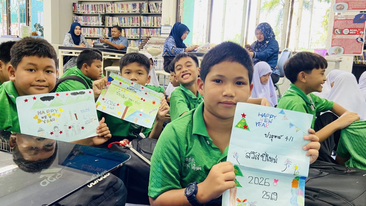 ห้องสมุดประชาชนอำเภอละงู จัดกิจกรรมส่งเสริมการอ่านภายในห้องสมุด ให้กับนักเรียนโรงเรียนสตูนศานติศึกษา กิจกรรม ส.ค.ส. DIY ในวันที่ 25 - 26 ธันวาคม 2568