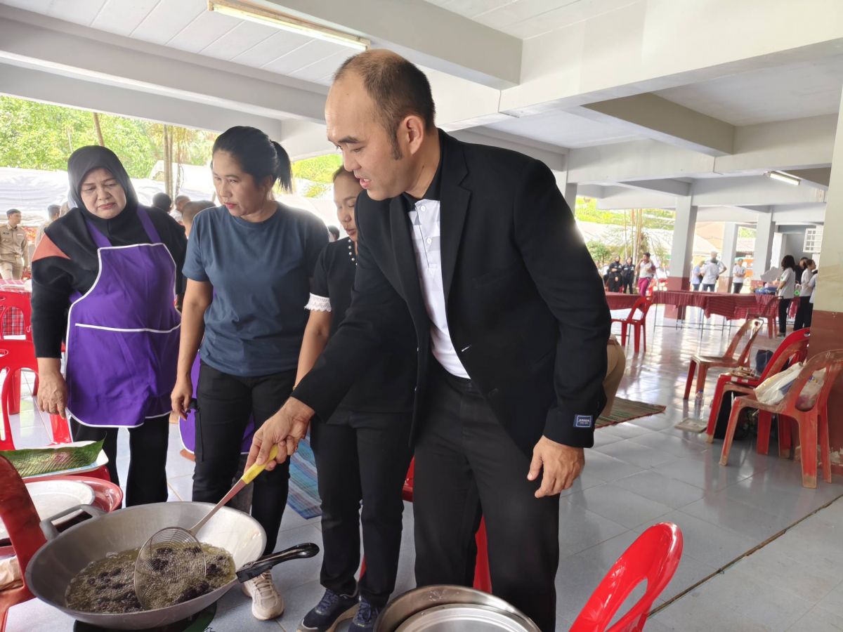 นายบุญนำ หมีนยะลา ผู้อำนวยการศูนย์ส่งเสริมการเรียนรู้ระดับอำเภอมะนัง มอบหมายให้ครูศูนย์การเรียนรู้ จัดโครงการฝึกอาชีพ สร้างงาน สร้างรายได้ระหว่างเรียน หลักสูตร ขนมไทยโบราณ Soft power ท้องถิ่น ขนมด้วง ขนมปังมจี