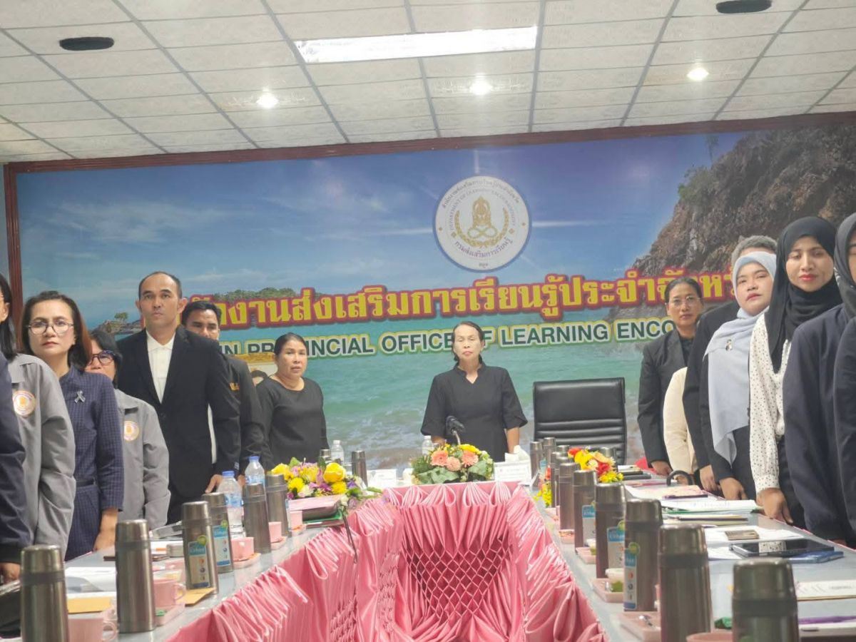 นายบุญนำ หมีนยะลา ผู้อำนวยการศูนย์ส่งเสริมการเรียนรู้ระดับอำเภอมะนัง พร้อมด้วยนางสาวจตุพร ทหารไทย ครูชำนาญการ และนางสาวสุพัตรา ใบหมาดปันจอ ครู ร่วมประชุมสัญจรผู้บริหารและเจ้าหน้าที่สำนักงานส่งเสริมการเรียนรู้ประจำจังหวัดสตูล ครั้งที่ 1/2569 ประจำเดือนมกราคม 2569 โดยมีนางวาสนา อนุสรณ์ประเสริฐ ผู้อำนวยการสำนักงานส่งเสริมการเรียนรู้ประจำจังหวัดสตูล เป็นประธาน
