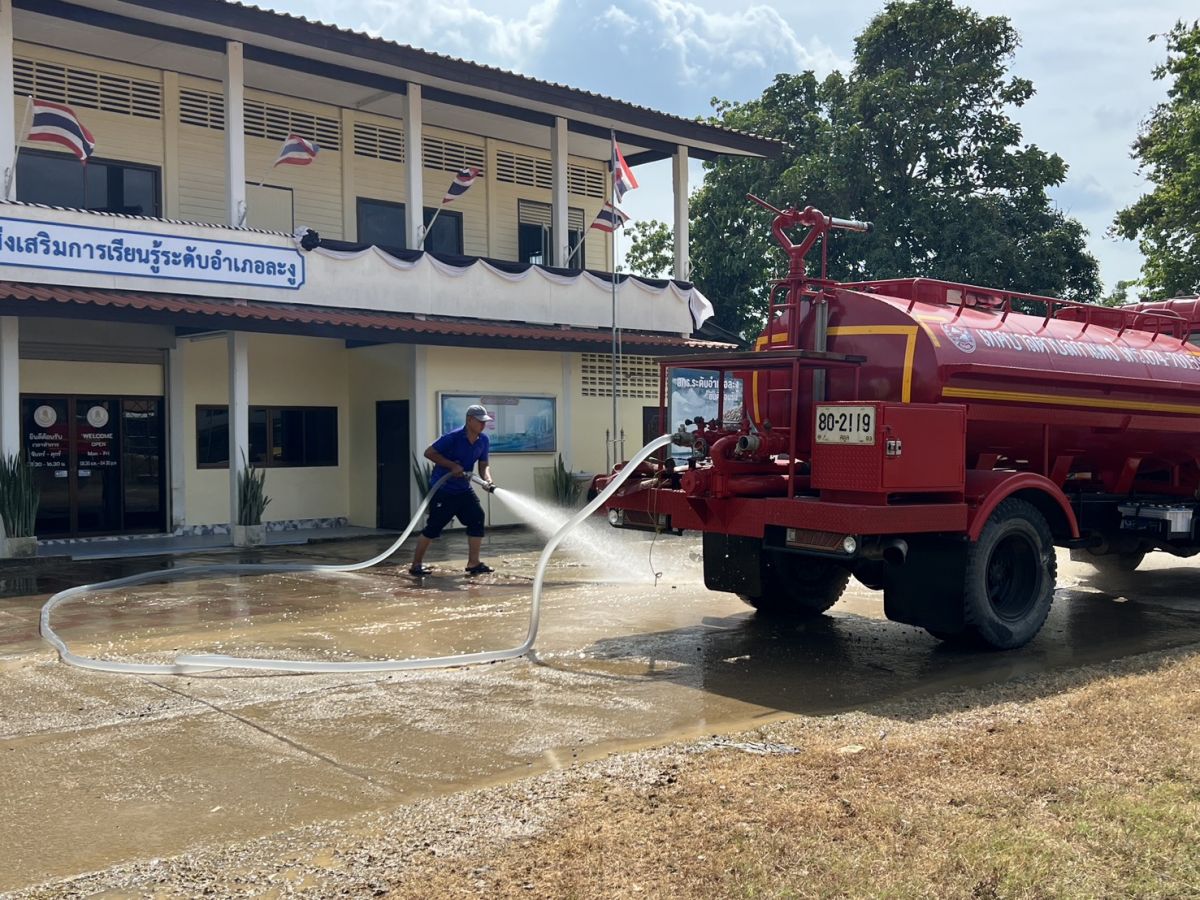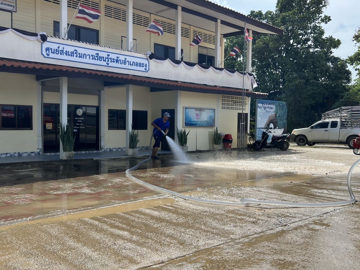 นายอาดำ ลิงาลาห์ ผู้อำนวยการสถานศึกษาศูนย์ส่งเสริมการเรียนรู้ระดับอำเภอท่าแพ รักษาการในตำแหน่ง ผู้อำนวยการสถานศึกษาศูนย์ส่งเสริมการเรียนรู้ระดับอำเภอละงู พร้อมด้วย บุคลากร สกร.ระดับอำเภอละงู ขอขอบคุณเทศบาลตำบลกำแพง ที่ให้บริการรถฉีดน้ำ ล้างและทำความสะอาดบริเวณหน้าอาคาร สกร.ระดับอำเภอละงู ณ สกร.ระดับอำเภอละงู ตำบลกำแพง อำเภอละงู จังหวัดสตูล