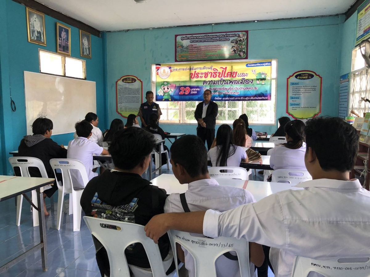 นายอาดำ ลิงาลาห์ ผู้อำนวยการสถานศึกษาศูนย์ส่งเสริมการเรียนรู้ระดับอำเภอท่าแพ มอบหมายให้ครูศูนย์การเรียนรู้ จัดกิจกรรมโครงการส่งเสริมการเรียนรู้ประชาธิปไตยในสังคมไทยและความเป็นพลเมือง ให้กับนักศึกษา ณ ศกร.ระดับตำบลแป-ระ อำเภอท่าแพ จังหวัดสตูล