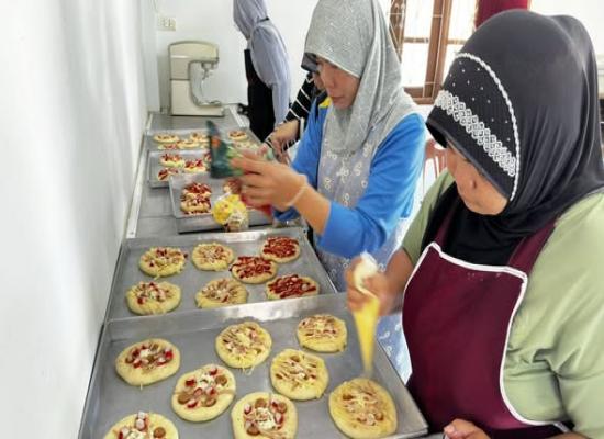 สกร.ระดับอำเภอควนโดน จัดโครงการพัฒนาอาชีพชุมชน หลักสูตรขนมเบเกอร์รี่ (ขนมปัง)