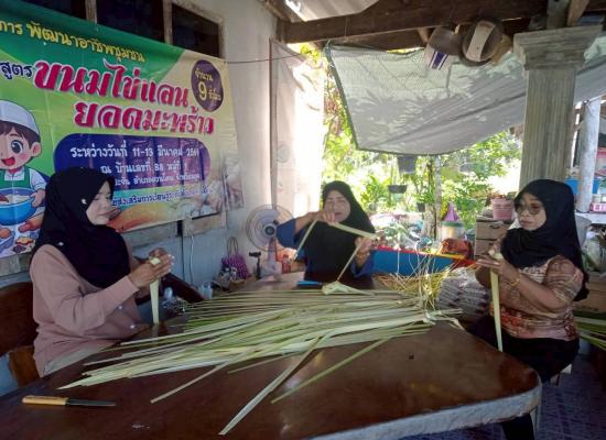 ศกร.ระดับตำบลวังประจัน จัดโครงการพัฒนาอาชีพชุมชน หลักสูตรขนมต้มไข่แลนยอดมะพร้าว
