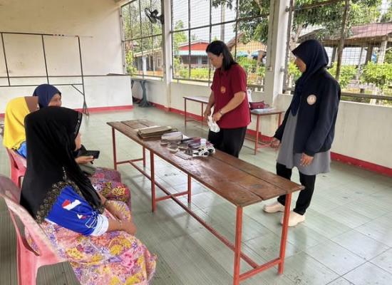 ศกร.ระดับตำบลบ้านควน เยี่ยมกลุ่มโครงการศูนย์ฝึกอาชีพชุมชน รูปแบบชั้นเรียนวิชาชีพ หลักสูตรผ้าพิมพ์เทียนมัดย้อมจากเปลือกไม้ยูคาลิปตัส