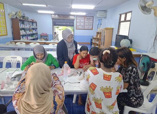 ศกร.ระดับตำบลควนขัน จัดโครงการศูนย์ฝึกอาชีพชุมชน รูปแบบกลุ่มสนใจ หลักสูตรเพ้นท์เล็บเจล