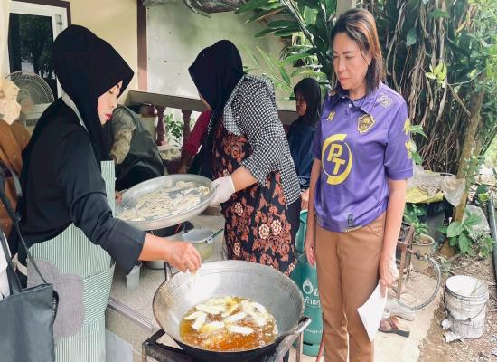 ศกร.ระดับตำบลบ้านควน เยี่ยมกลุ่มจัดโครงการศูนย์ฝึกอาชีพชุมชน รูปแบบกลุ่มสนใจ หลักสูตรข้าวแต๋นน้ำแตงโม