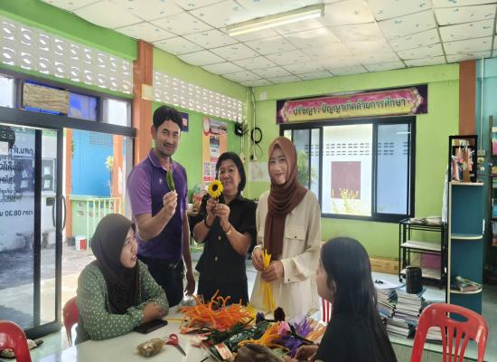ศูนย์ส่งเสริมการเรียนรู้ระดับอำเภอทุ่งหว้า ลงพื้นที่เยี่ยมกลุ่มการจัดกิจกรรมการเรียนรู้เพื่อการพัฒนาตนเอง หลักสูตรการทำดอกไม้จากลวดกำมะหยี่ วันที่ 25 กุมภาพันธ์ 2569