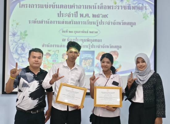 ศูนย์ส่งเสริมการเรียนรู้ระดับอำเภอมะนัง ร่วมโครงการแข่งขันตอบคำถาม หนังสือพระราชนิพนธ์ ฯ ประจำปี พ.ศ.2569 ระดับสำนักงาน สกร.ประจำจังหวัดสตูล