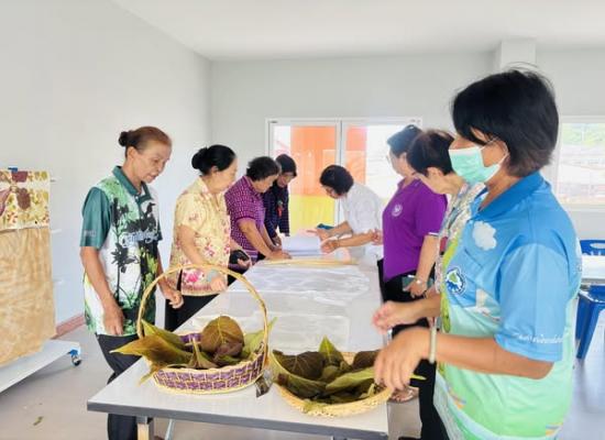 ศกร.ระดับตำบลพิมาน จัดโครงการศูนย์ฝึกอาชีพชุมชน รูปแบบกลุ่มสนใจ หลักสูตรกระเป๋าผ้า eco print